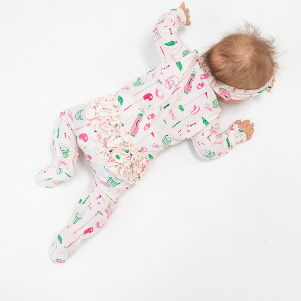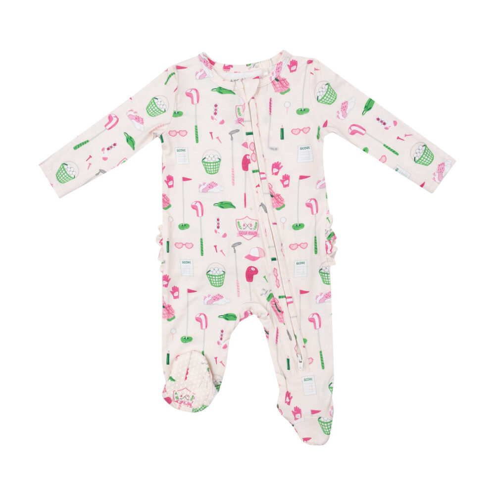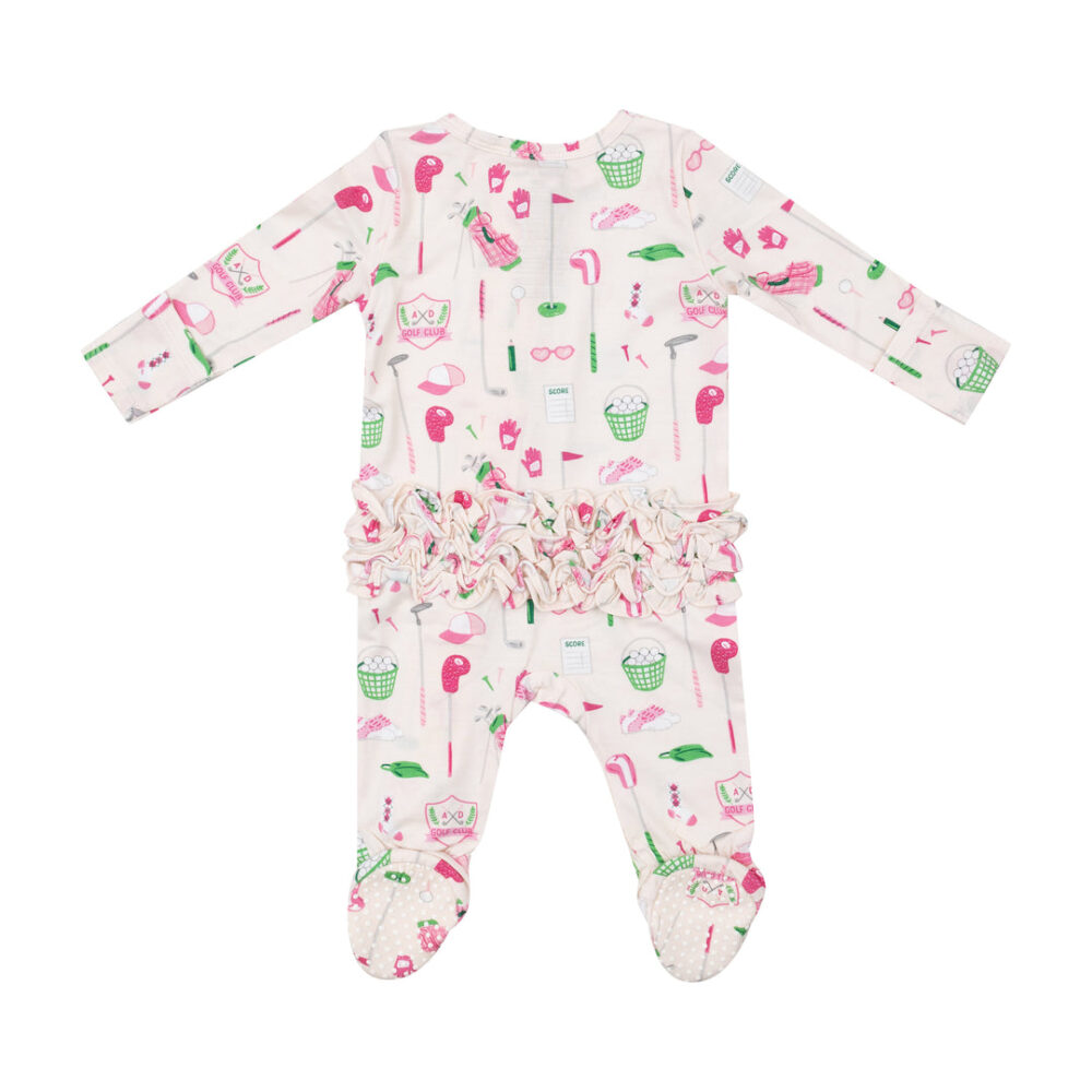 2 Way Zipper Ruffle Back Footie – Golf Club Pink