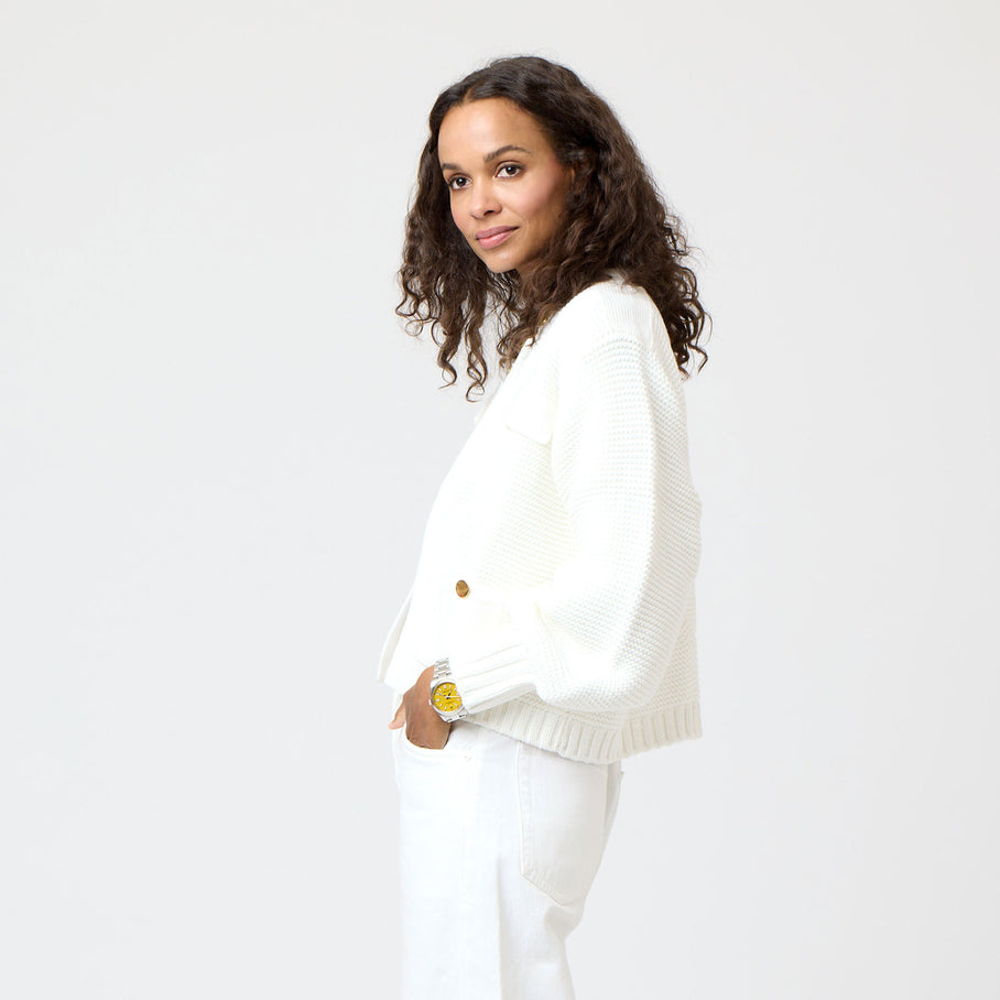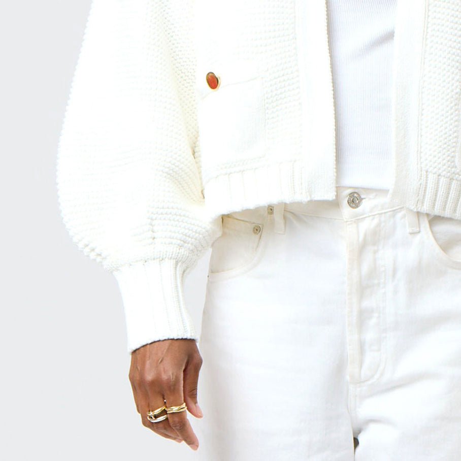 New to the Beau-lero family, The Alaina Cardigan in soft cotton knit, is your top layer for day into evening.