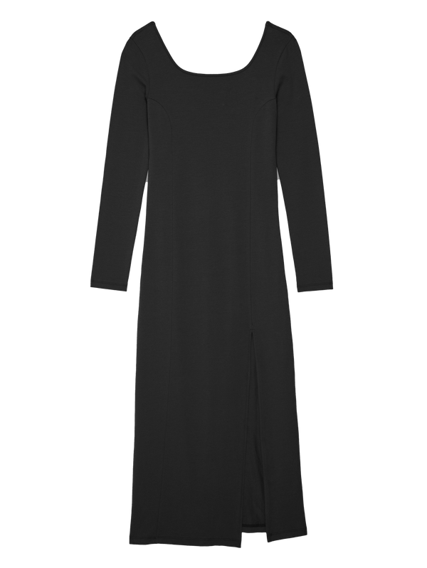 Turning heads has never been this easy. Soft square neckline, curved dart details, tasteful side slit, and a sexy low back.