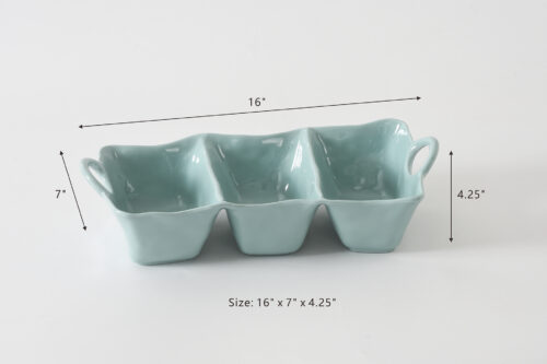 3 Section Deep Server from the Aqua Collection. Great to use for assorted sides, vegetables, and appetizers. Offer a trio of toppings on your next buffet! Sleek blue-toned superior quality melamine. Great for your indoor and outdoor activities.