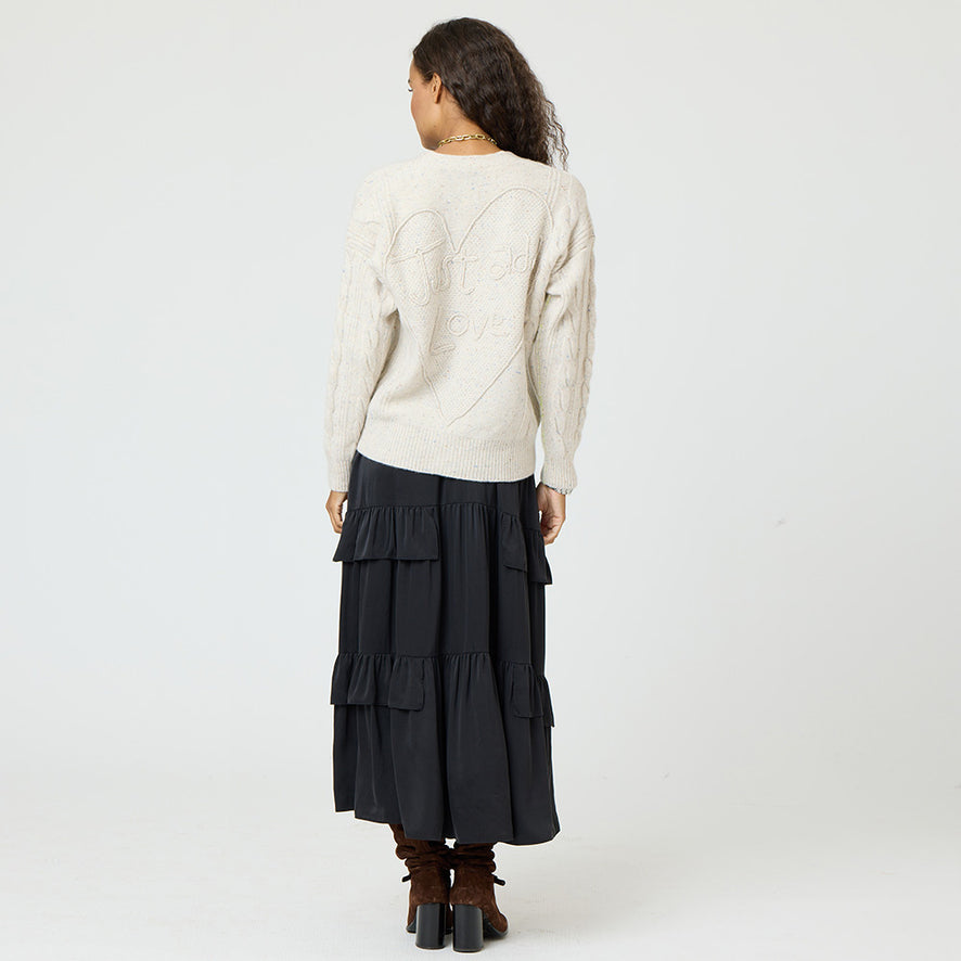 The Athena maxi black silk skirt is a new boho addition to KR’s skirt family. It features ruffles with a slight side-slit. Dress this long skirt down with a sweatshirt or sweater, or wear it with a blazer for an office-to-drinks ensemble.