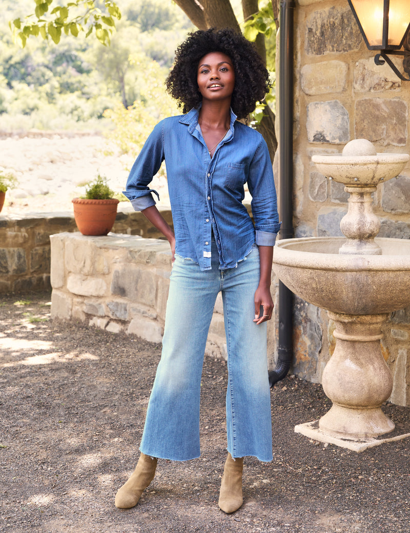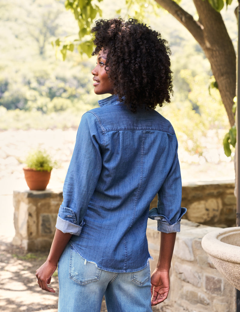 Barry—F&E’s first-born button-up—is a closet essential. Classic in style and sharply tailored to hug your waist and back, Barry curves in all the right places. Notice the signature single pocket, hip-skimming hemline, and bust-flattering button placement.