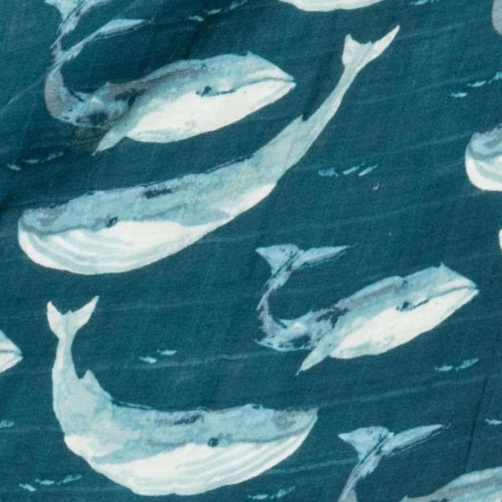 Blue Whale Bamboo Muslin Swaddle Blanket