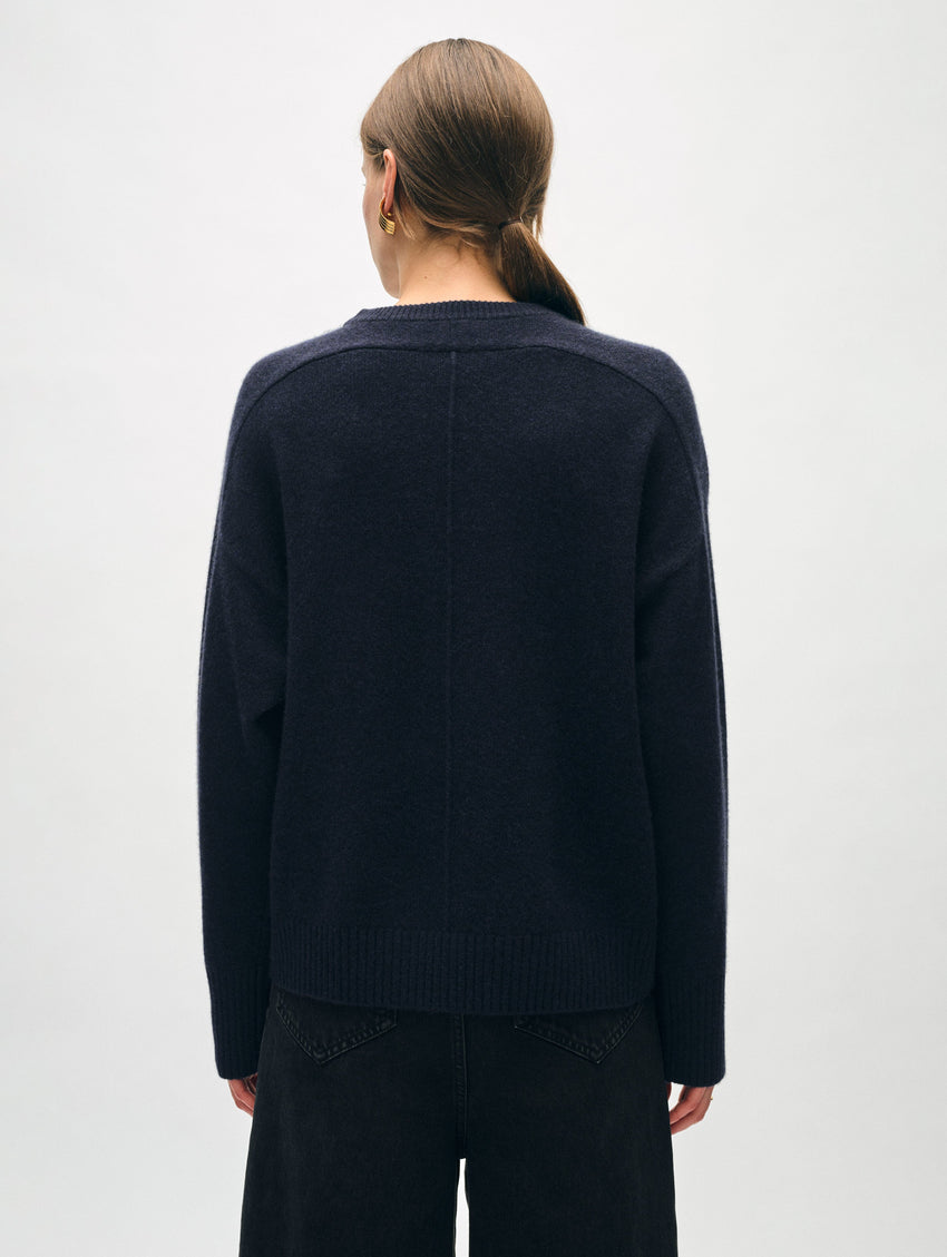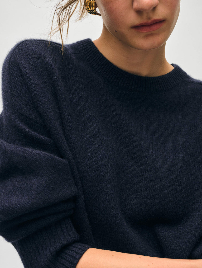 Cashmere Saddle Sleeve Crewneck – Deep Navy