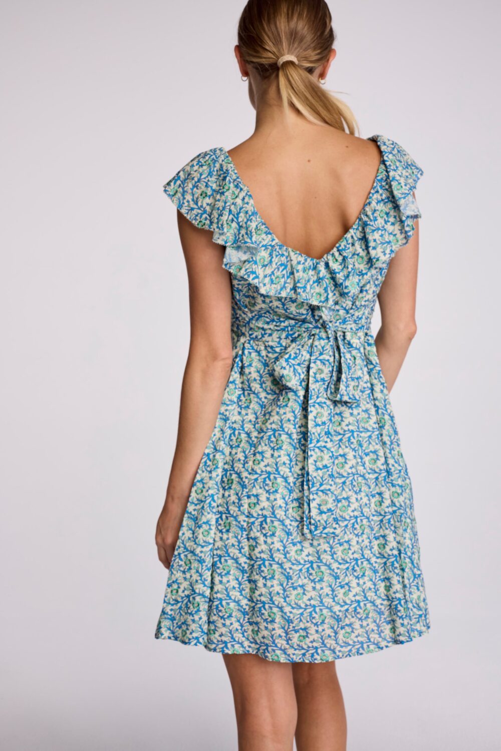 The Cassie Dress is the perfect spring addition—crafted in beautifully hand-embroidered vintage floral. This charming A-line silhouette features delicate ruffles along the front and back neckline, adding a soft, feminine touch. A tie-back detail allows you to cinch the waist to your liking, creating a flattering shape that finishes at mid-thigh. Light, breezy, and effortlessly romantic, it’s a seasonal must-have.