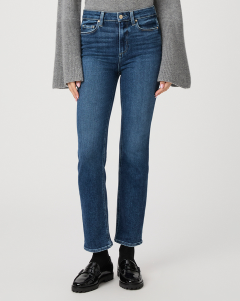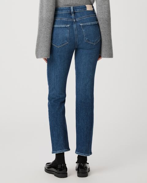 This high-rise, straight jean is lean through the leg and finishes at the ankle. This pair is crafted from customer-favorite PAIGE VINTAGE denim in an aged dark wash with natural fading and german gold hardware. PAIGE VINTAGE takes all of the work out of breaking in your favorite pair of vintage jeans. They’ve combined the comfort of stretch with everything you love about authentic vintage denim to create super soft jeans that feel perfectly lived-in from the very first wear.