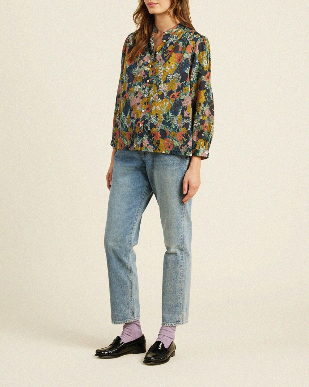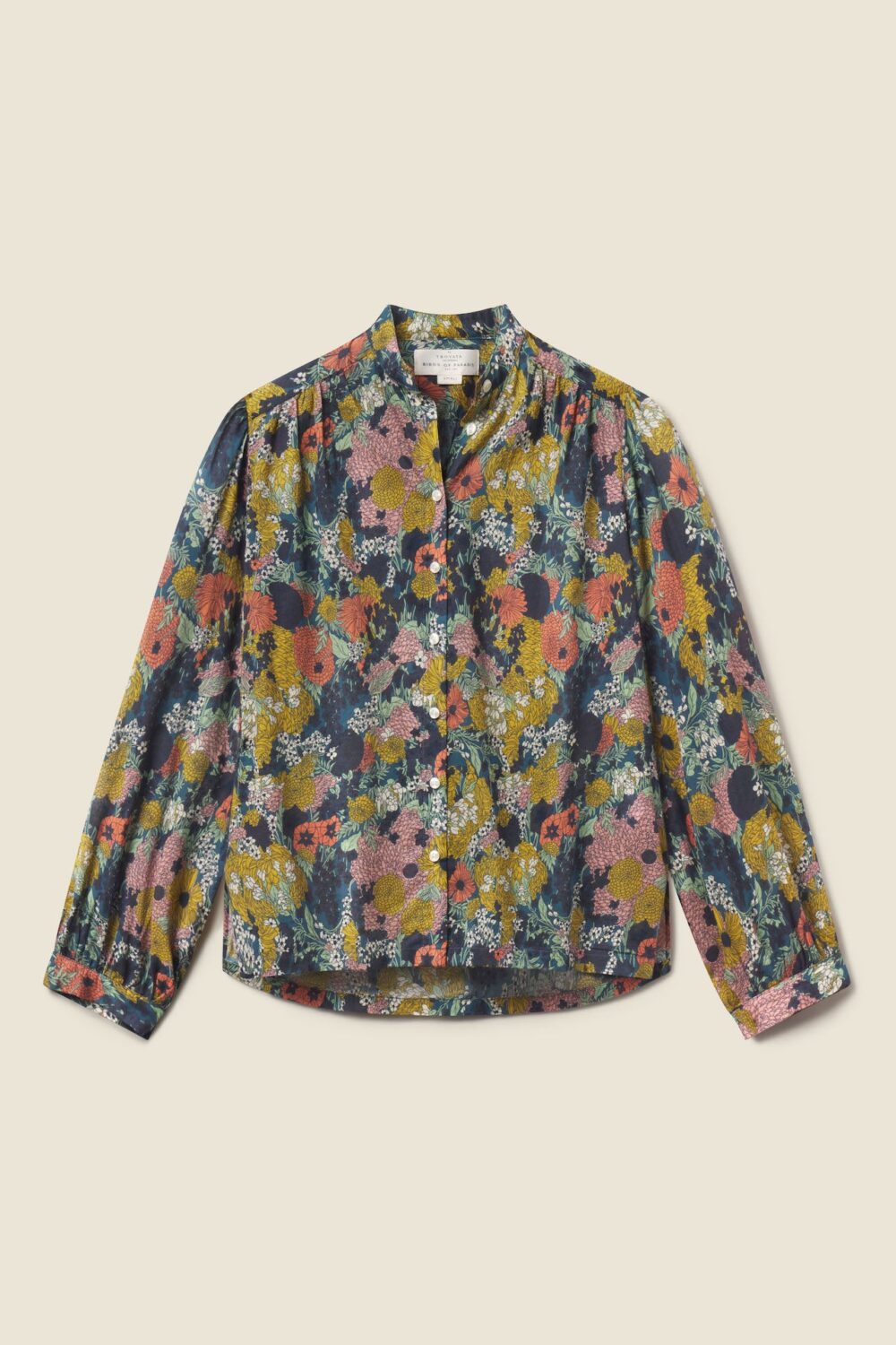 The Clara Blouse is a button-front blouse with billowy shoulder gathers, a clean standing collar and bracelet-length buttoned sleeves. Includes Trovata’s signature back detail with a gathered waist tab. Shown here in Deep Bramble and made from soft cotton.