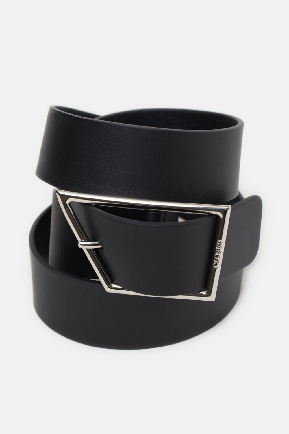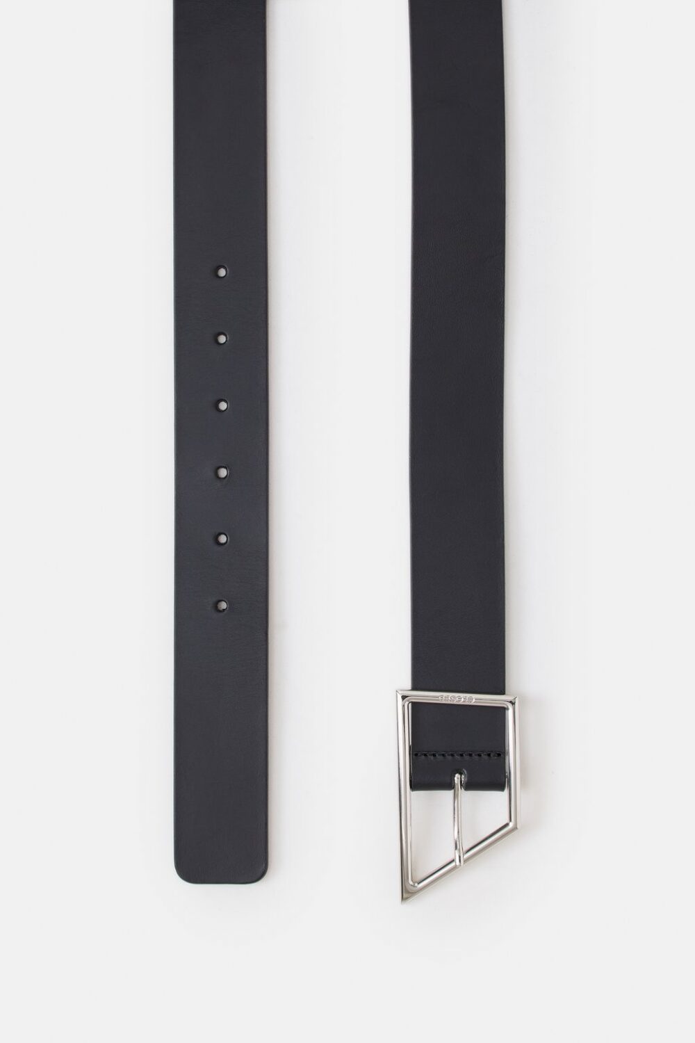 Belt made from Italian leather. With asymmetric metal pin buckle and polished edges. Made in Italy.