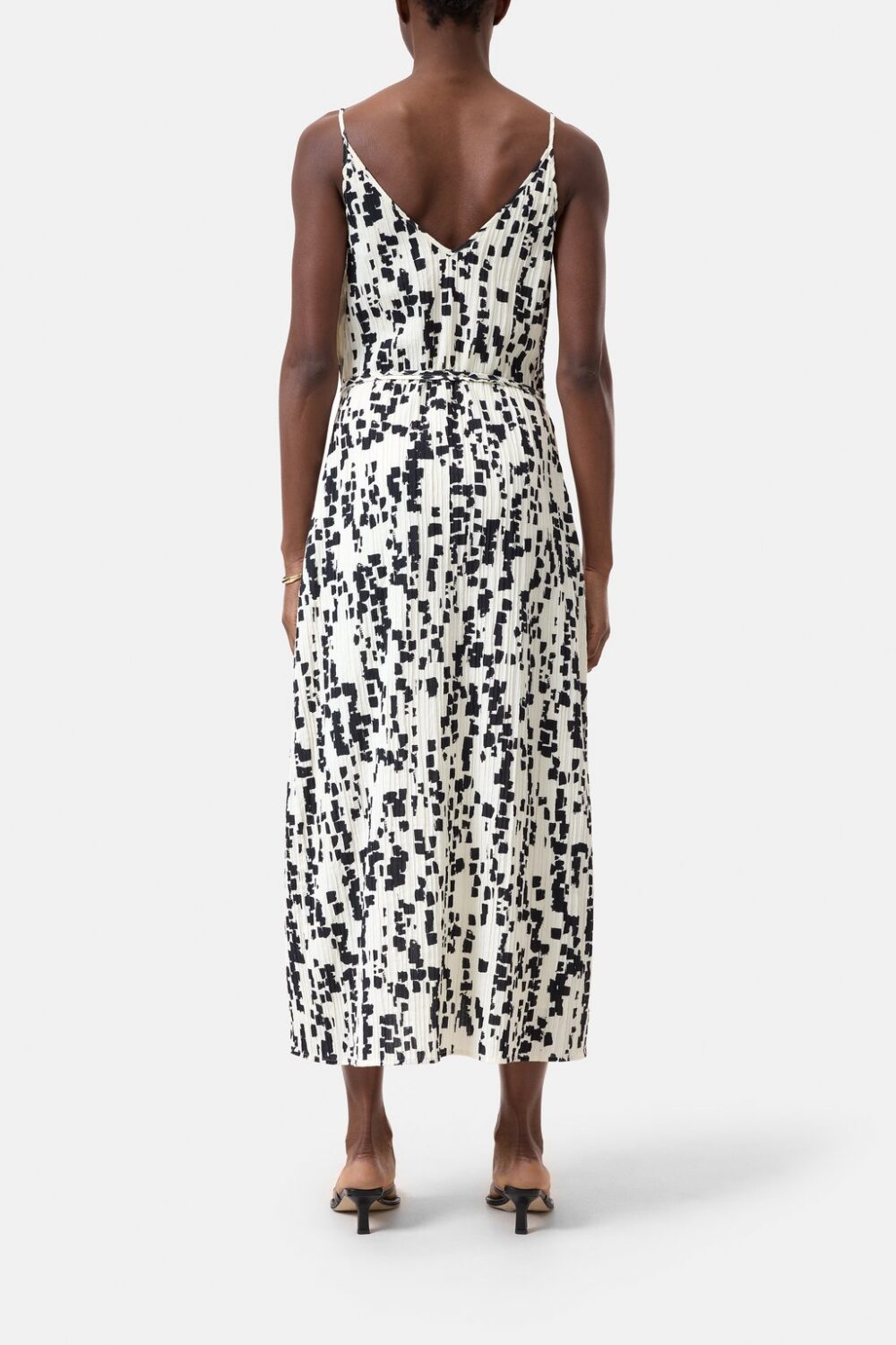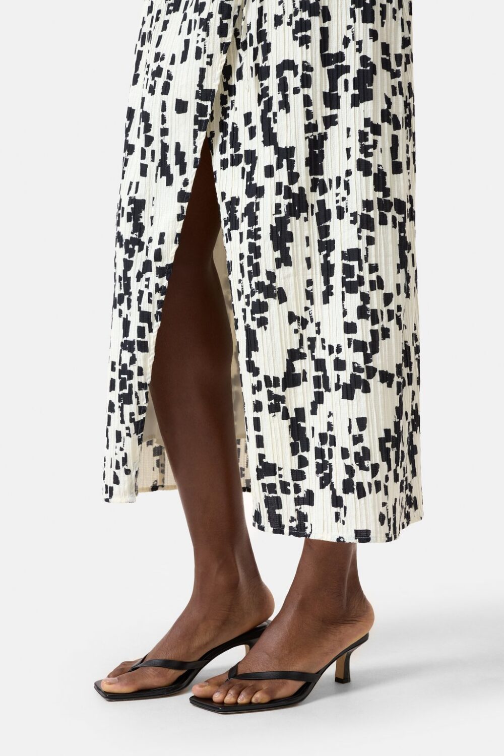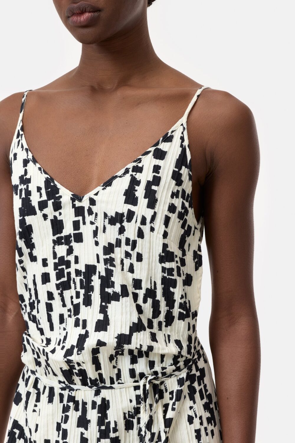 Slim-fit wrap dress in cotton fabric with a slight amount of elastane for a soft feel. The abstract and graphic print has a three-dimensional effect thanks to the crinkle effect. With side lacing and a V-neckline at the front and back.