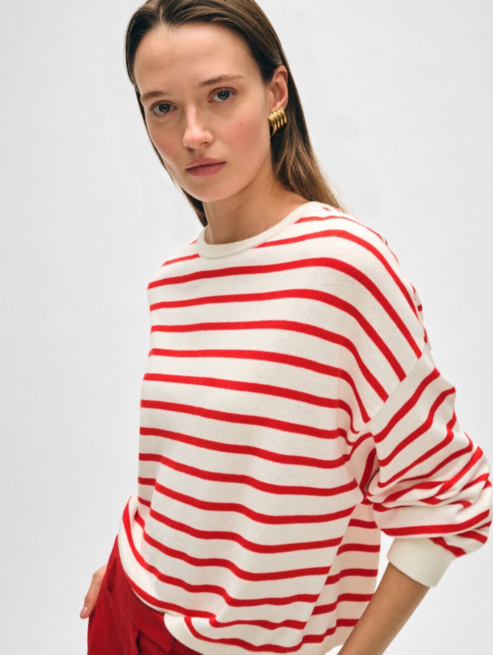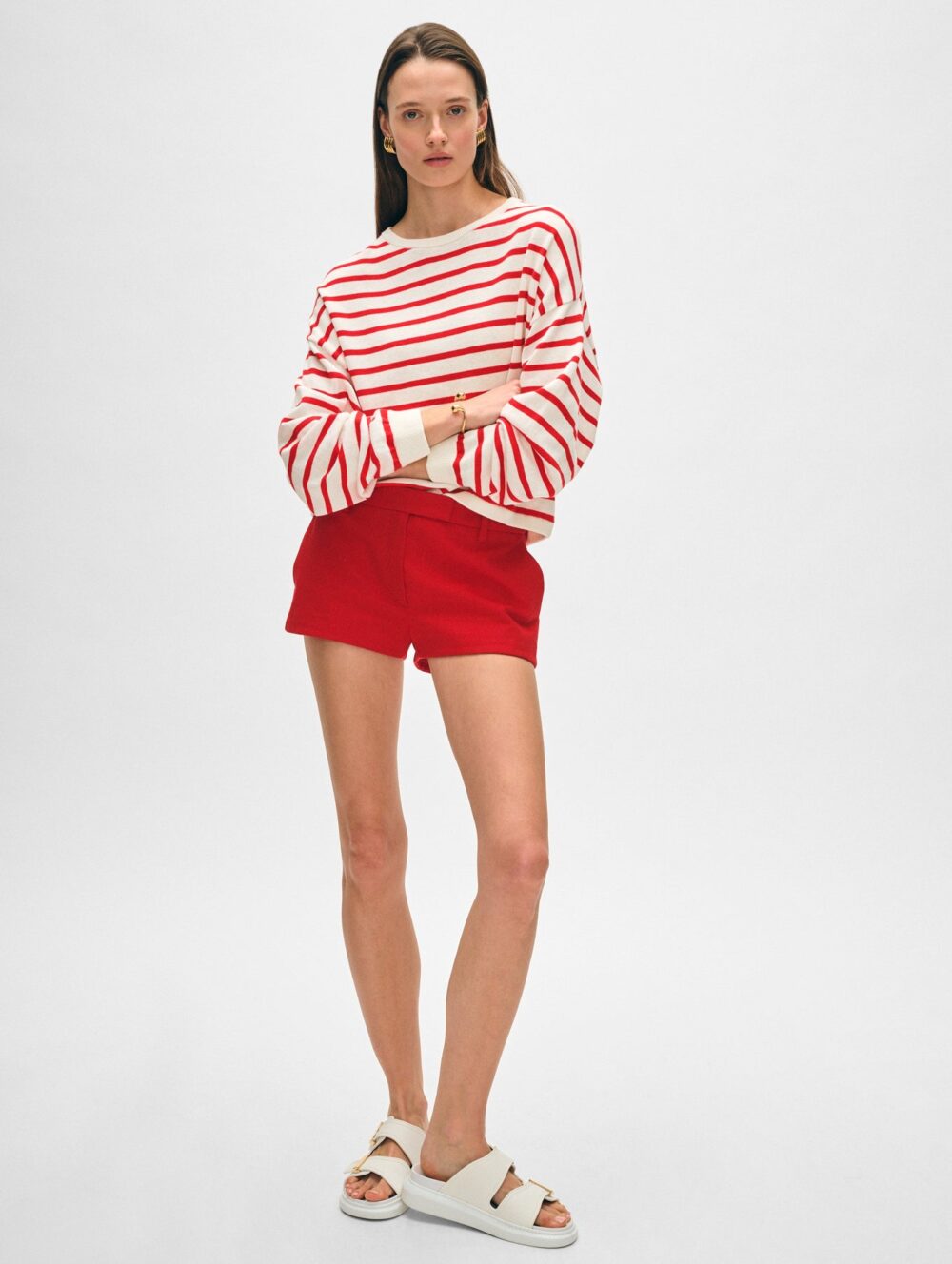 If you loved W+W’s Cashmere Drop Shoulder Striped Sweater, it’s time you met their warm-weather version in a cotton blend. A must-have on off-duty days, this style boasts all the markers of refined ease: drop shoulders, a cropped and boxy fit, and wide sleeve. Wear it tucked or untucked with your favorite pair of jeans.