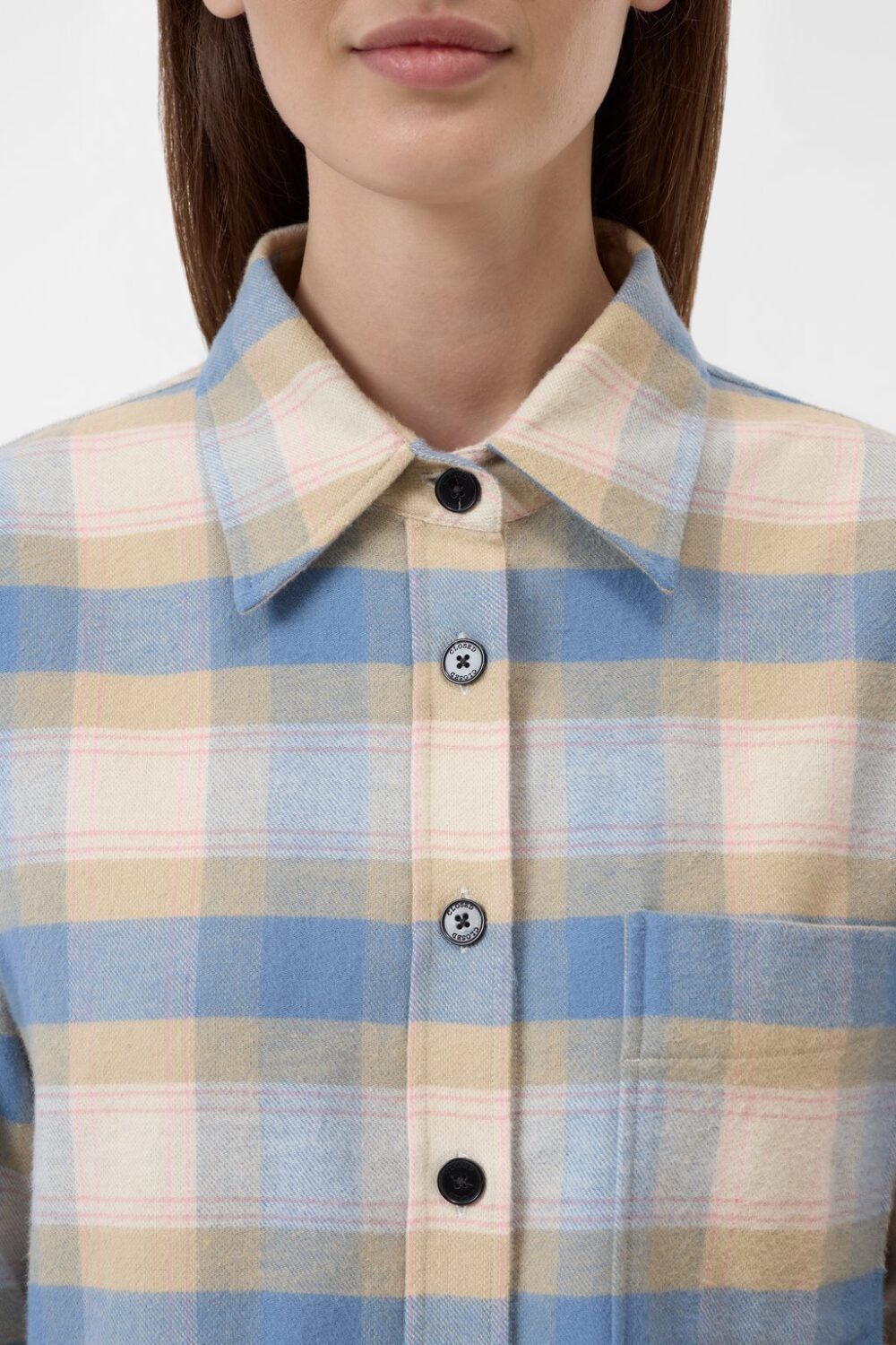 The cropped oversized shirt is made from soft brushed cotton in a relaxed fit. Features a chest pocket with signature stitching, angled sleeve plackets, and a curved hem for a clean finish.
