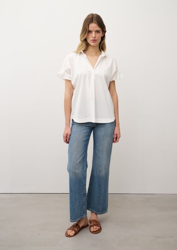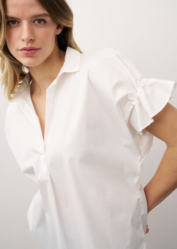 The Derry Fancy cotton blouse has a relaxed fit and short, slightly gathered sleeves for a feminine touch. The classic shirt collar gives it an elegant look, making it suitable for both casual and smart combinations. Ideal for a stylish, versatile look.