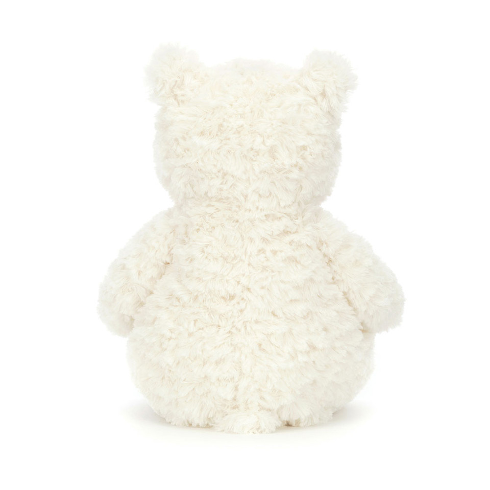 Edmund Cream Bear is so soft and sweet, we thought he was made of coconut gelato! Sturdy and tufty with teeny fold ears, a beany bottom and squishable paws, Edmund’s got a fine snuffle-snout and a bobbly inkdrop nose! Ramble through the snow with this fuzzy cub.