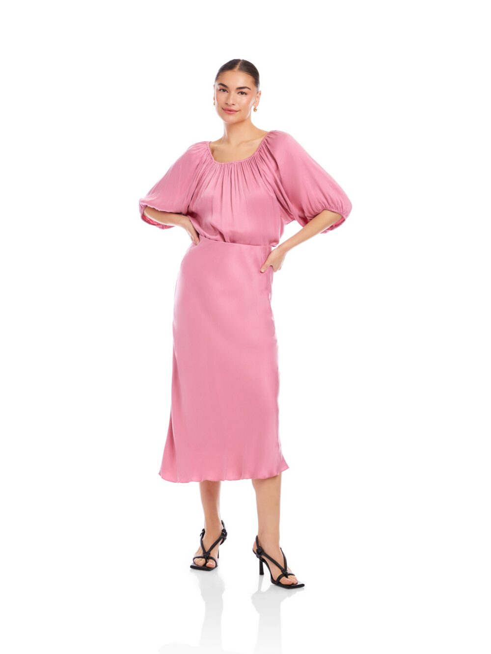 - Bias-cut for a smooth, skimming drape.
