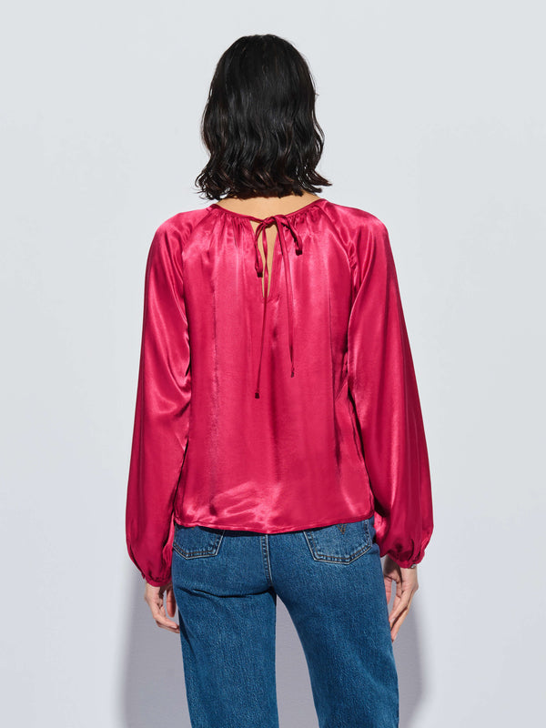 This breezy blouse features shirring at the front and back neckline for maximum drape, raglan sleeves, and a spaghetti tie keyhole closure. It’s chic, it’s effortless, it’s everything you need. (This one comes in Raspberry Jam.)
