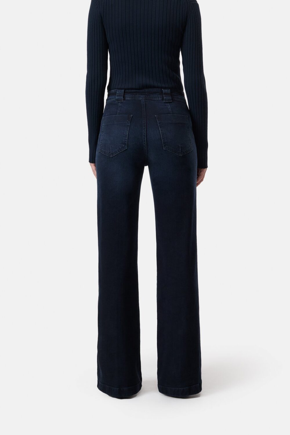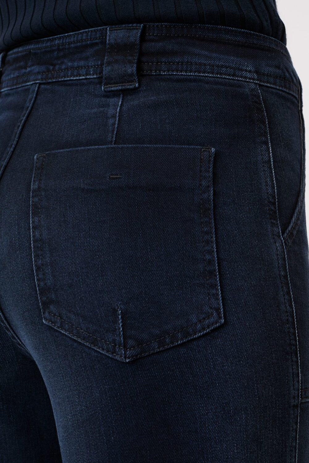 Made from mid-weight comfort stretch denim (11 oz.) with a high waist: These flared fit jeans feature wide belt loops and patch pockets. The blue-black wash offers maximum freedom of movement.