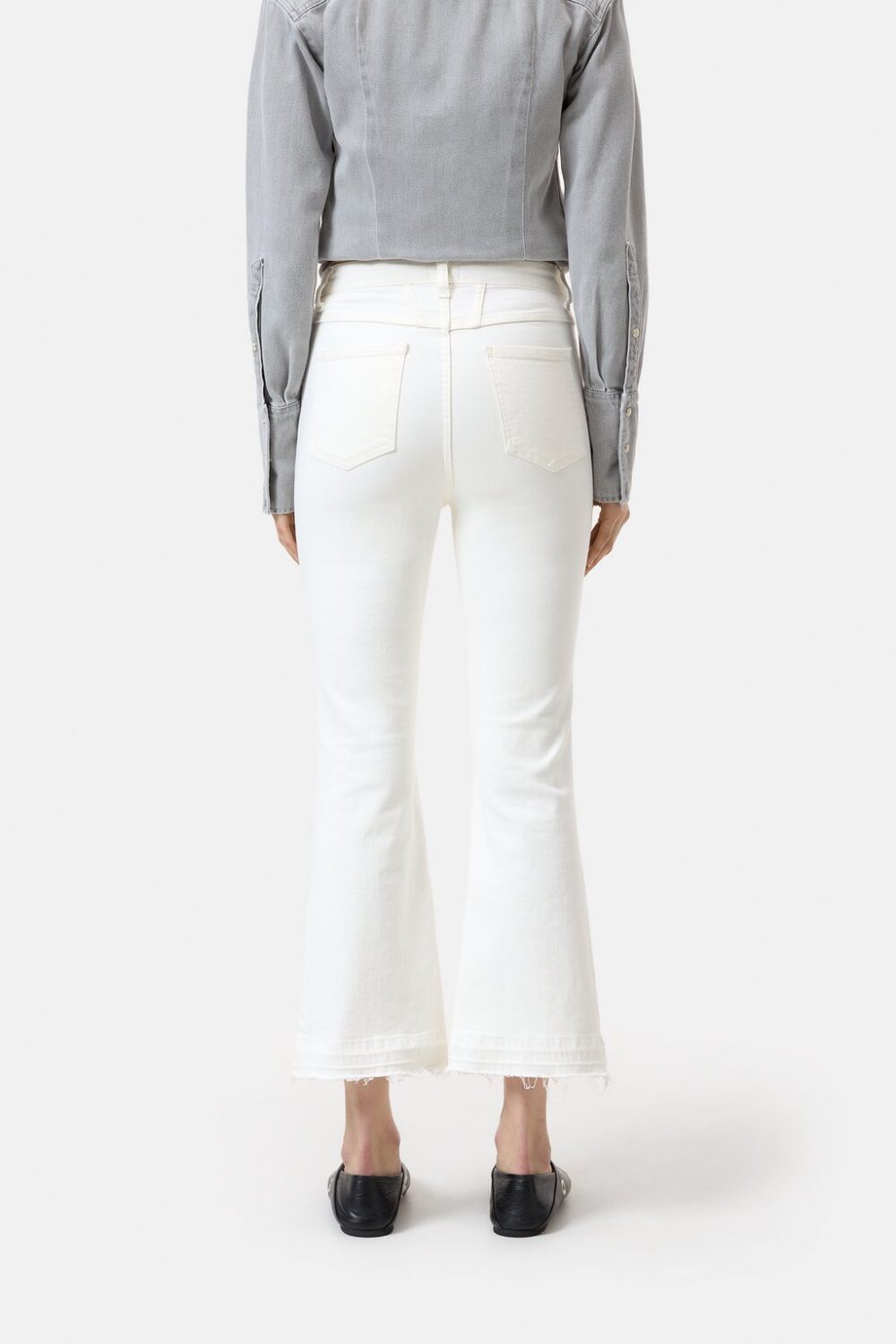 In medium-weight ecru denim (11.5 oz.) made from organic cotton and recycled elastane by the renowned Candiani weaving mil: these 5-pocket jeans come with an open leg hem, high waist and a comfortable fit thanks to the elastane content.