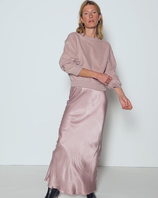 Slip into something silky… With an elastic waist, ultra-flattering fit, and luxe Hammered Satin fabric, it’s the maxi skirt of your dreams.