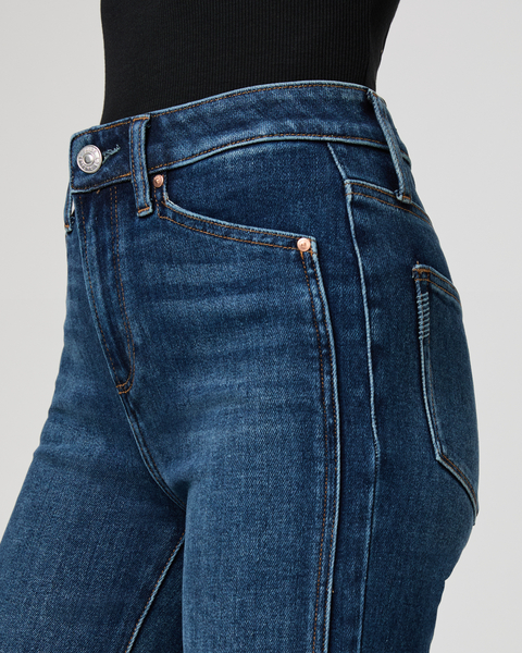 The High Rise Laurel Canyon is a vintage PAIGE style that has made a big comeback. Cut from their TRANSCEND VINTAGE denim in a tinted medium wash with flattering forward paneling, outseam vents, and a 32″ inseam, this bootcut silhouette combines the signature comfort of Transcend with rich denim character for a lived-in look.