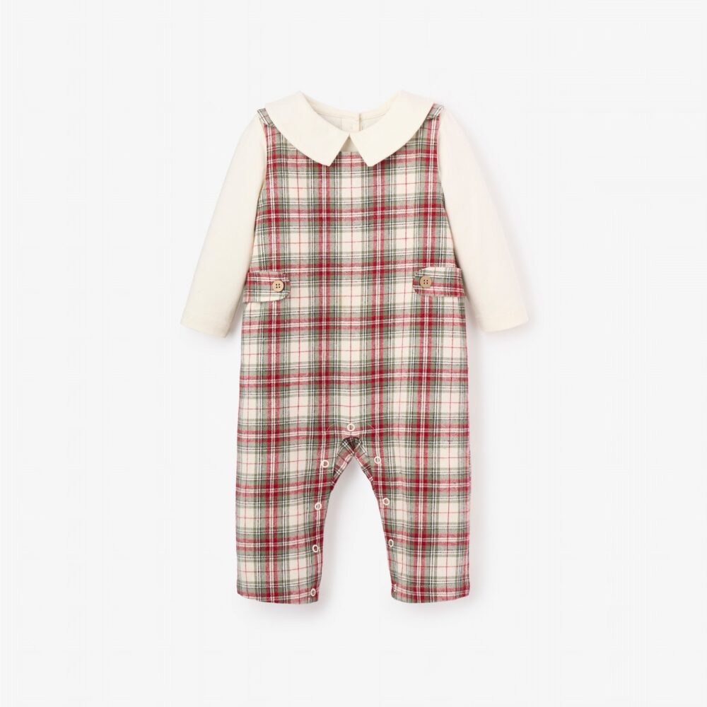 A rich, wintry take on the classic Jon Jon, this set pairs deep tartan hues with a soft button-down shirt for a look that’s both dashing and comfortable. A seasonal staple made for moments both merry and bright.