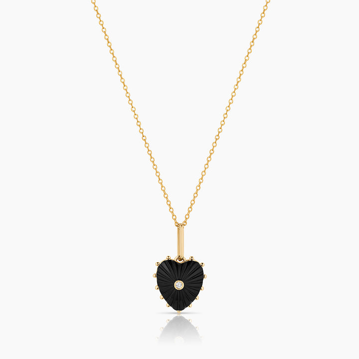 She’s Malene’s baby sister, a smaller hand-carved onyx heart charm with a sparkling center stone. A favorite for gifting and layering.