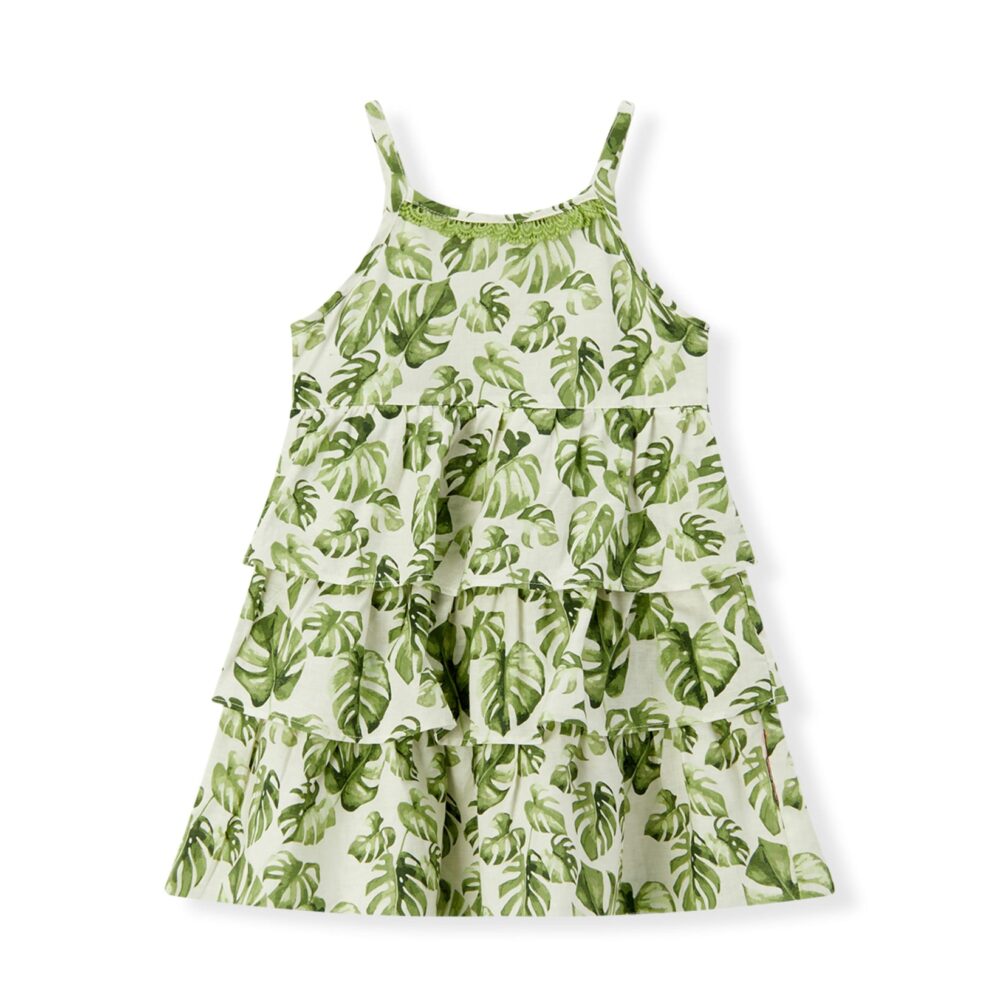 For a breezy, effortless look, choose Milkbarn’s Linen Tiered Dress in the Island Leaf print. The tiered design adds soft volume, while the lightweight linen provides comfort and breathability, making this dress ideal for warm-weather outings or special occasions.