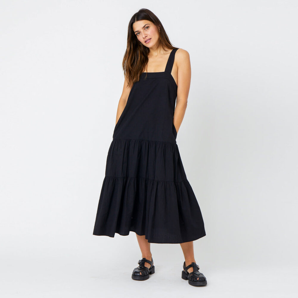 Fall in love with a chic, versatile, head turner: the Jean Midi Dress. Made from a soft cotton poplin, it features a small embroidered heart on the back, plus straps that you can wear straight or crossed.