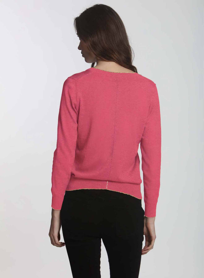 LABEL+thread took everything we all loved about the Frankie and translated it into Cotton Cashmere, a cooler weather yarn with a bit more heft. Subtle metallic handstitches at sides and back seam gives this versatile color driver just the right amount of go-out factor that’s needed for casual get-togethers.