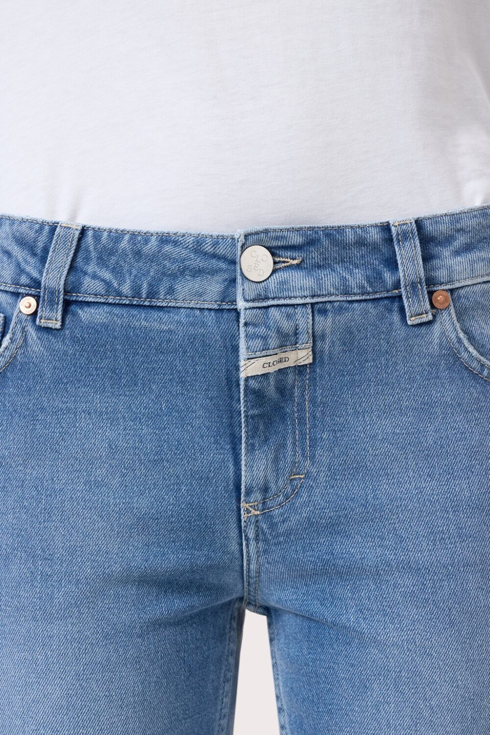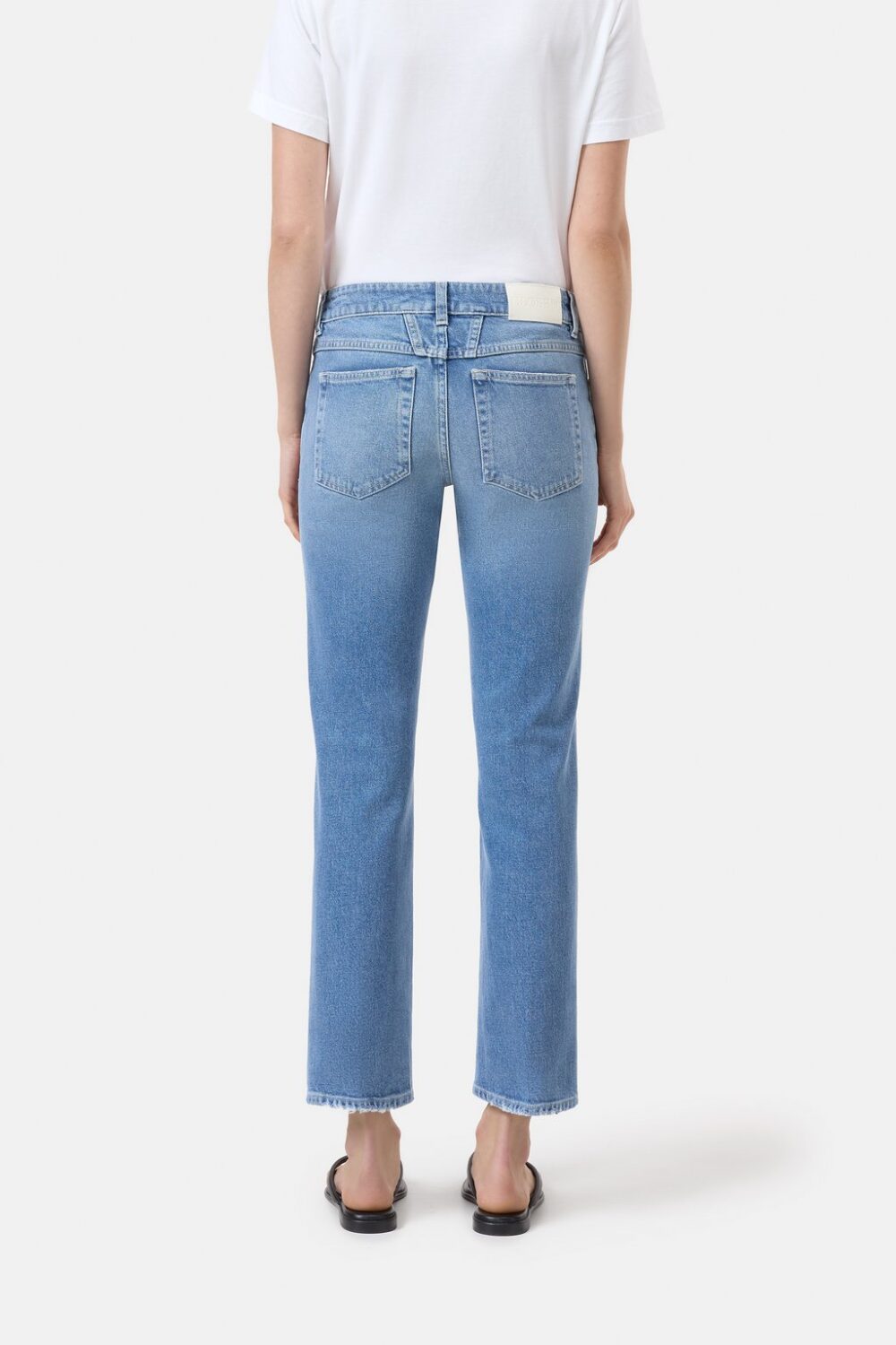 In a 5-pocket style with a slim fit: These new jeans in a straight fit feature a low-rise waist and straight cropped leg. Crafted from robust Gentle Comfort Stretch denim (12 oz.) in a medium blue worn-in wash with subtle used effects. The authentic twill structure is enhanced by the slight elastane content for added comfort. Made in Italy.