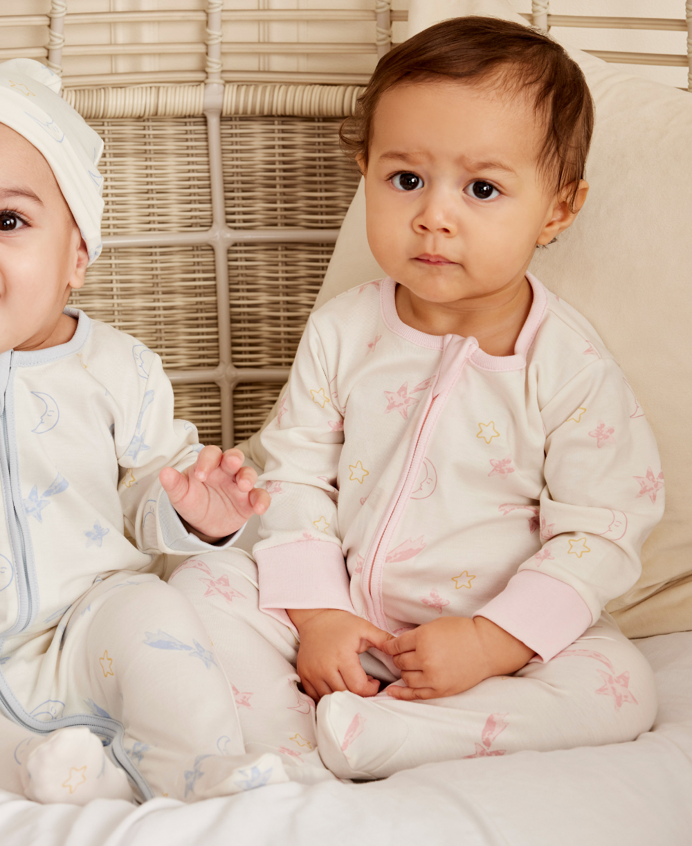 With a starry sky print, this footie is designed to keep baby cute, comfortable, and cozy. Made from the softest Pima cotton for ultimate comfort.