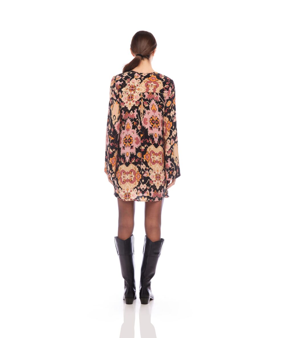 The Layne Mini Dress is expertly crafted from cupro fabric, providing a luxurious drape and comfortable fit. The elegant print material adds a touch of sophistication, while the long angled sleeves and split neck front slit offer a modern twist. Look effortlessly chic in this versatile dress.