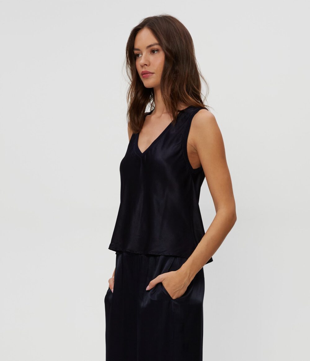 Liz Satin V Neck Tank – Nocturnal