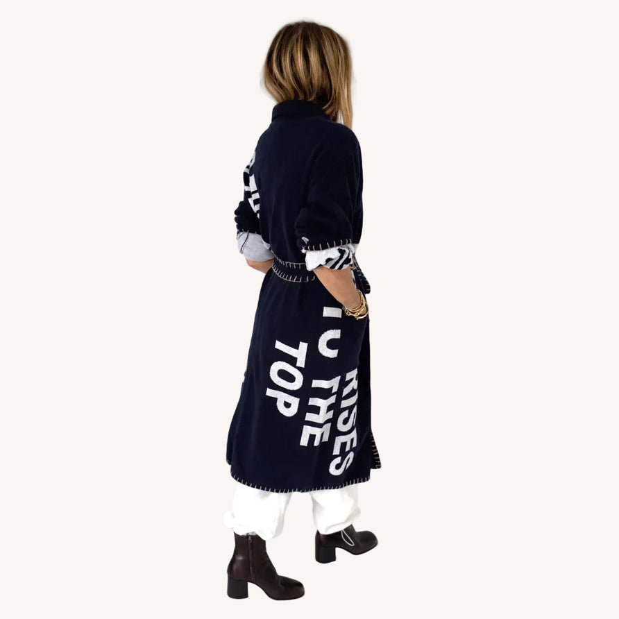 Reversible and fab, Love Rises to the Top is KR’s duster that can also act as a spring jacket. Wear it on either side and layer it over your favorite jeans.