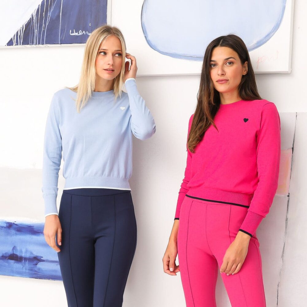 The Lu Sweater is a must-have cotton pullover that is new to the KR collection. Made from lightweight 100% cotton, this body-skimming sweater layers perfectly and stands alone, too. Details include contrast tipping at the hem and cuffs—plus a tiny, embroidered heart on your heart.