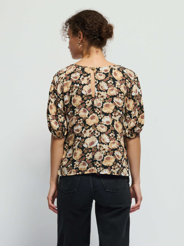 Add a little 90s nostalgia to any outfit with this boat neck blouse. Shirring at the shoulders and sleeve opening, back keyhole for easy on and off, and a delicate shell button closure (because details matter).
