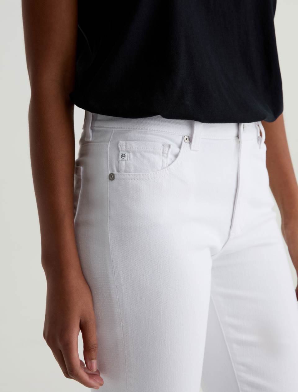 Mari is AG’s popular mid-rise slim-straight jean for women, updated in white denim with the softest feel. The five-pocket style has a natural waist and fits easy around the hips, complete with a straight silhouette that slims down at the leg openings. This pair is crafted from 10.25 oz. Cloud Soft Stretch Denim, an exclusive AG Cloud Soft Denim™ fabric.