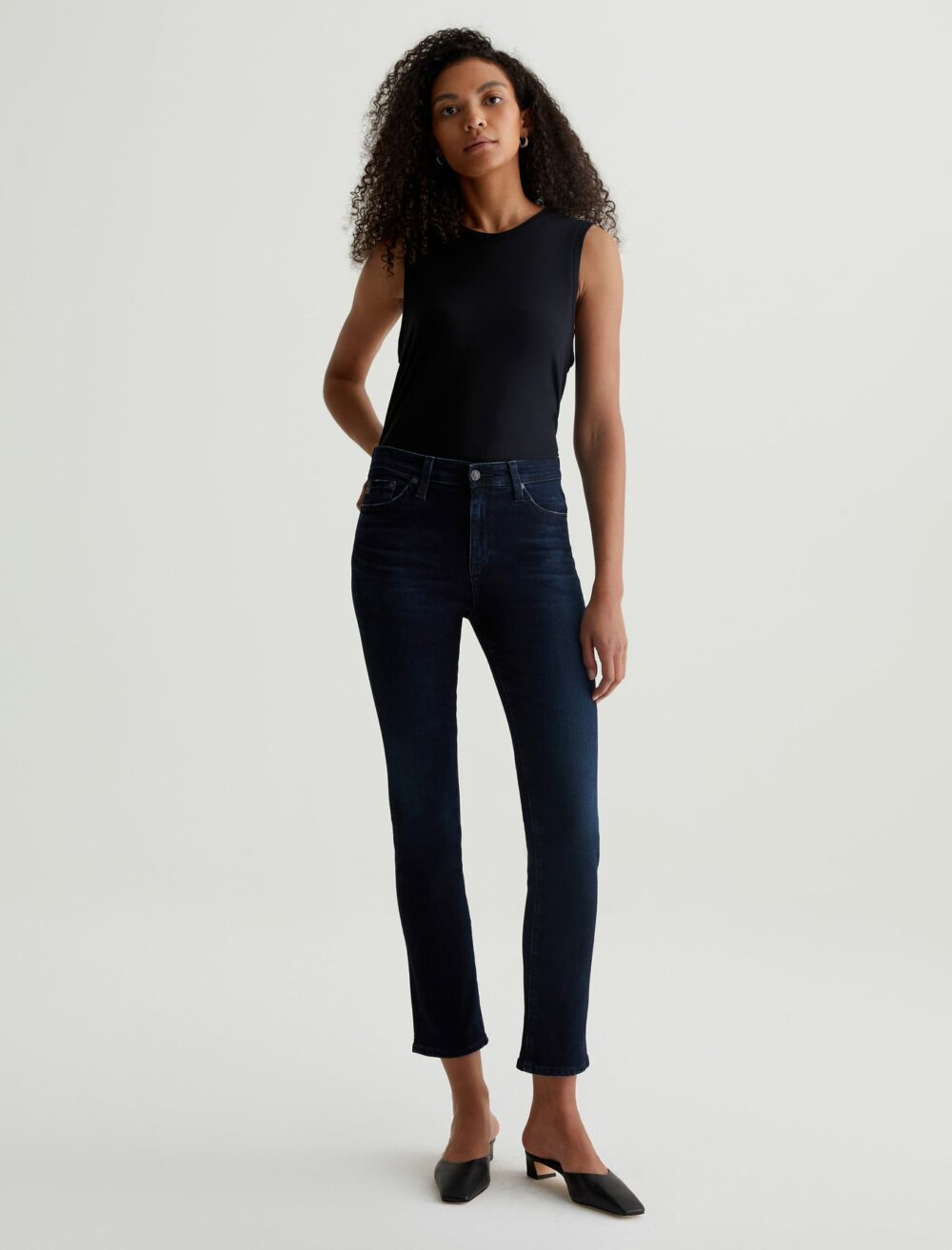 Mari is a mid-rise slim straight in faded black denim. AG’s designers custom-developed the 8-year AG-ed™ Denim wash to recreate the unique wear characteristics of authentic vintage denim. Crafted from comfortable 12 oz. Universe Stretch Denim, this pair has a gentle fade with whiskering and crease marks. These high-waisted jeans fit easy around the hips and extend into straight legs that slim down at the leg openings.