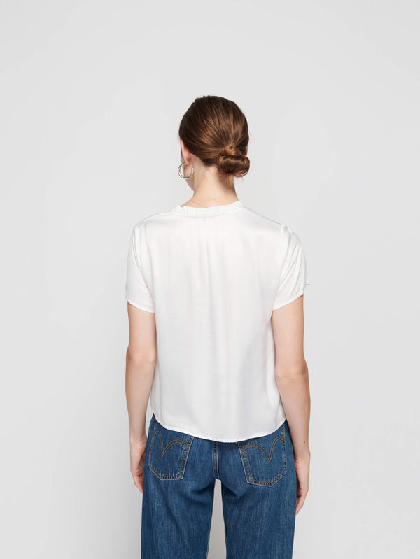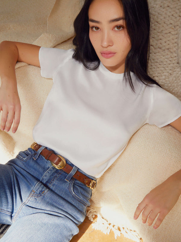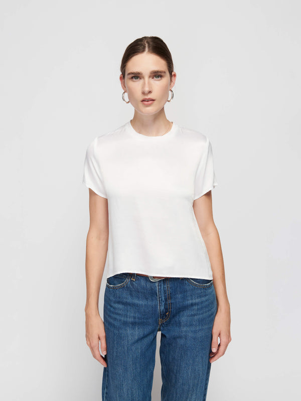 The dressed up version of your favorite laid-back, slightly cropped tee with a contrasting rib neckband.