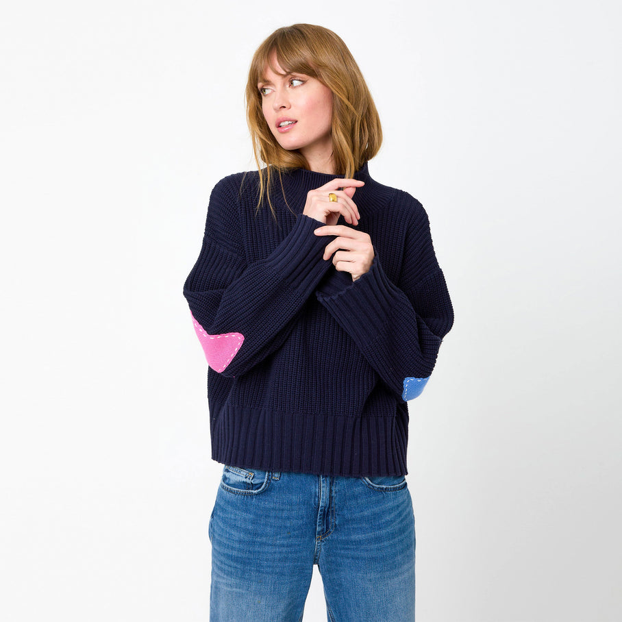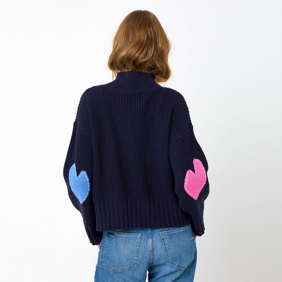 The Marlow is back in 100% cotton knit, featuring contrast heart elbows and a ‘loved’ embroidery above the bottom hem. This relaxed-fit mock neck sweater is flattering on all body types. The Marlow Sweater is the perfect Fall KR staple!