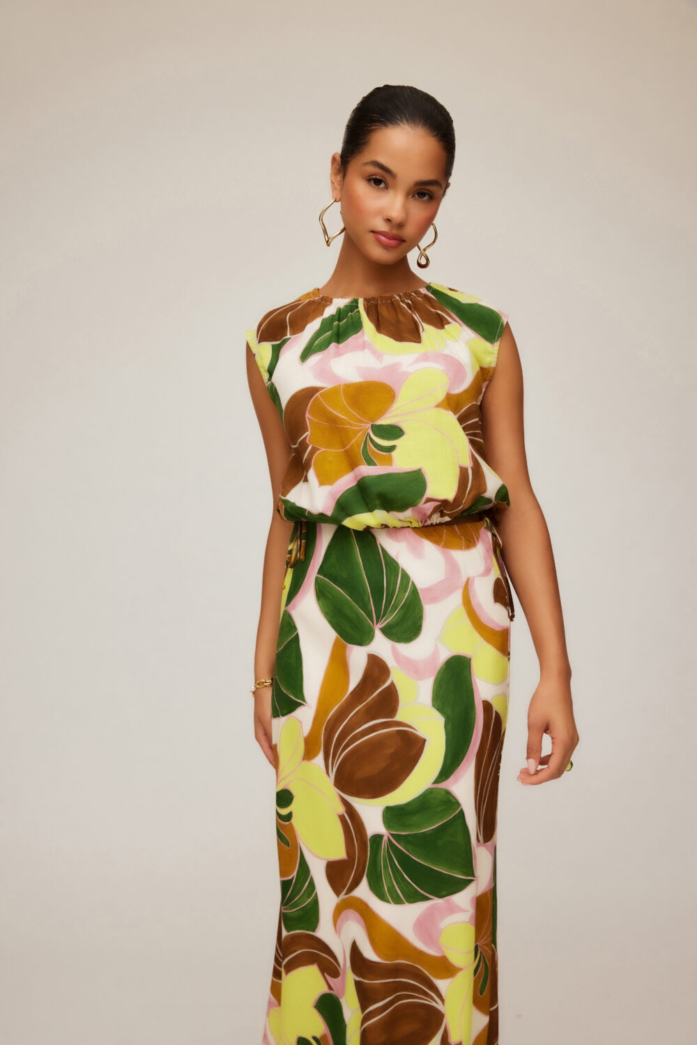 Expertly crafted with a beautiful print, the Mia skirt is the perfect addition to your spring wardrobe. Its bias cut flatters the body, making it a versatile choice for any occasion. Shown here with the matching Sami Top!