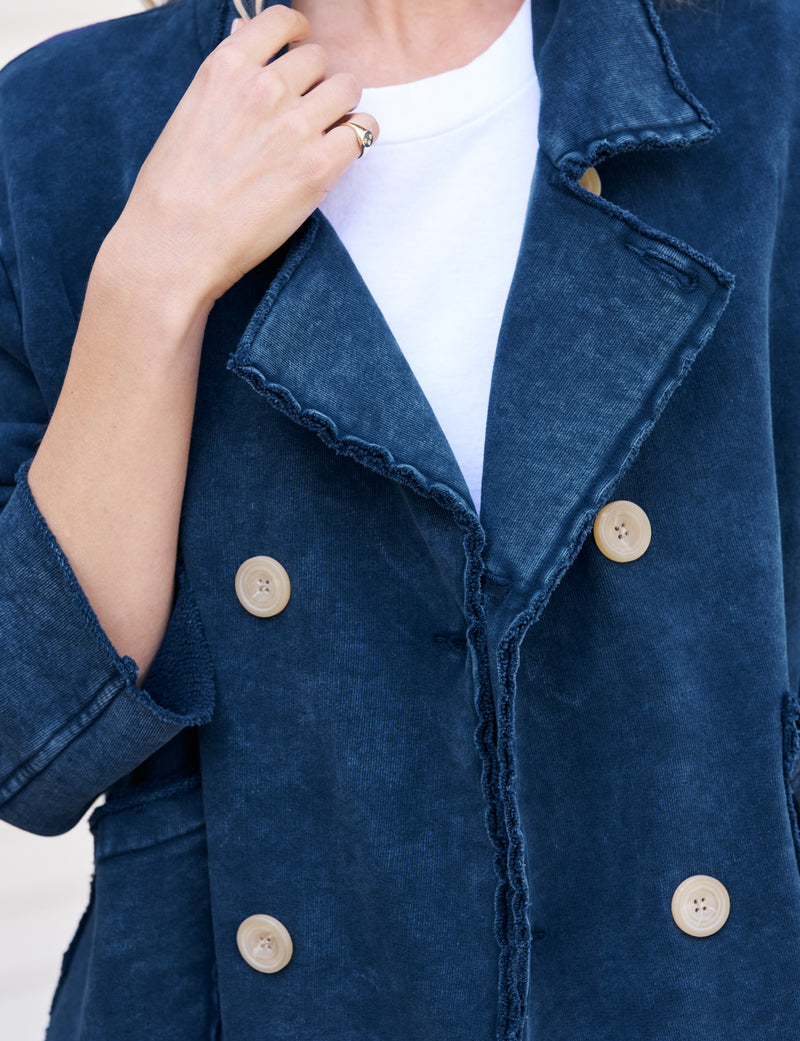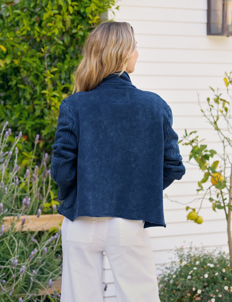 F&E’s Belfast Sweatshirt Peacoat was love at first sight! This mini, everyday version has all the best parts of the original—luxurious horn buttons, scrunchable sleeves, and a statement collar — with the cutest cropped fit!