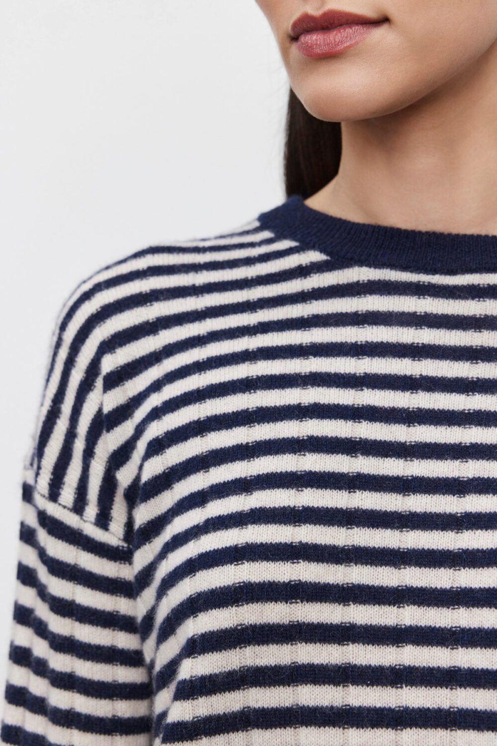 Embrace luxurious comfort with the Monica Sweater, crafted from ultra-soft, lightweight 100% cashmere. Featuring a crew neckline, ribbed stitch design, and rolled cuffs and hem, this slightly cropped sweater is sure to become a wardrobe essential. Perfect for layering or wearing on its own.
