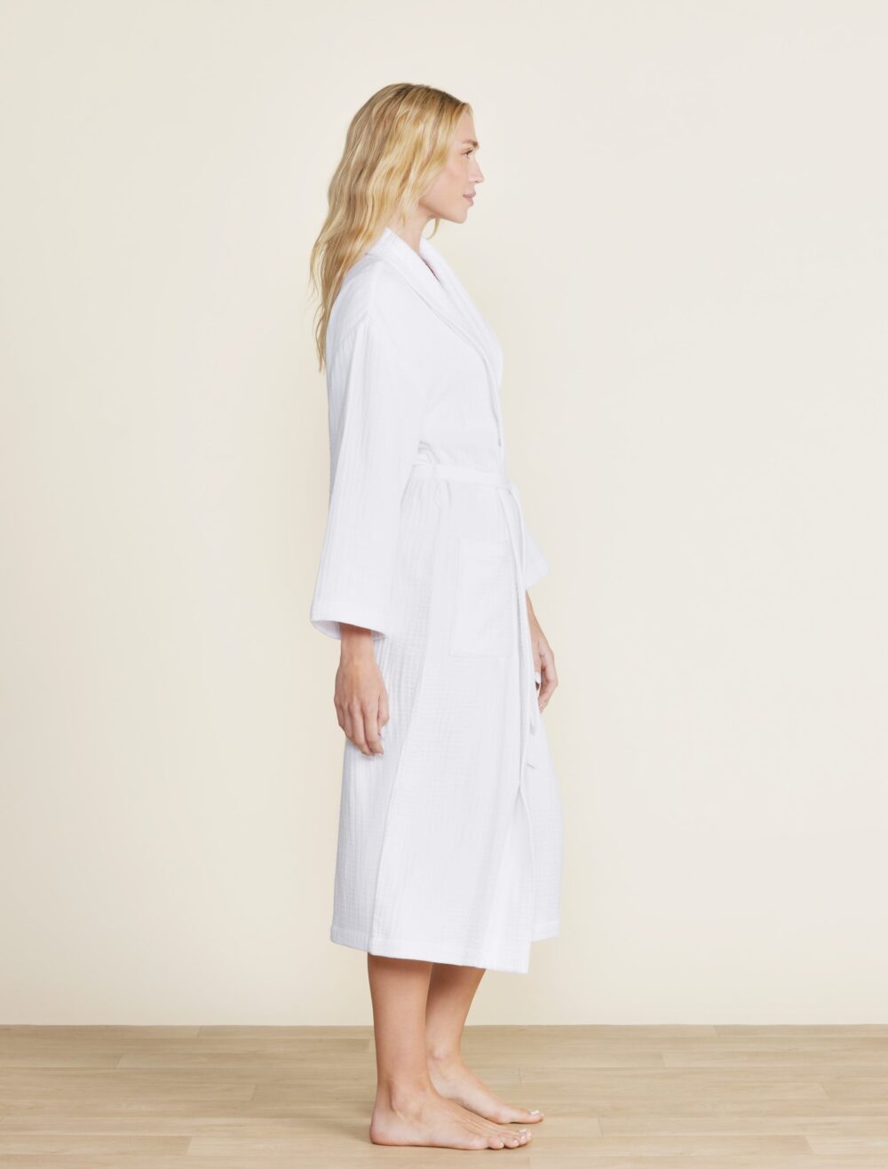 Snuggle into the comfort of the Muslin Cotton Spa Robe. Crafted with ultra soft muslin cotton for a luxurious spa experience, this robe features a shawl collar, front patch pockets, and adjustable waist tie for comfortable wear.