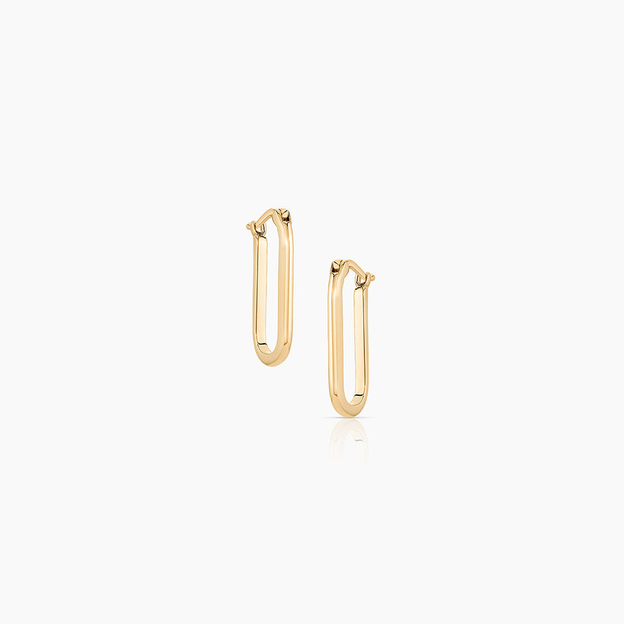 These clean, modern elongated hoops are a slightly more exaggerated length for a bit more je ne sais quoi!