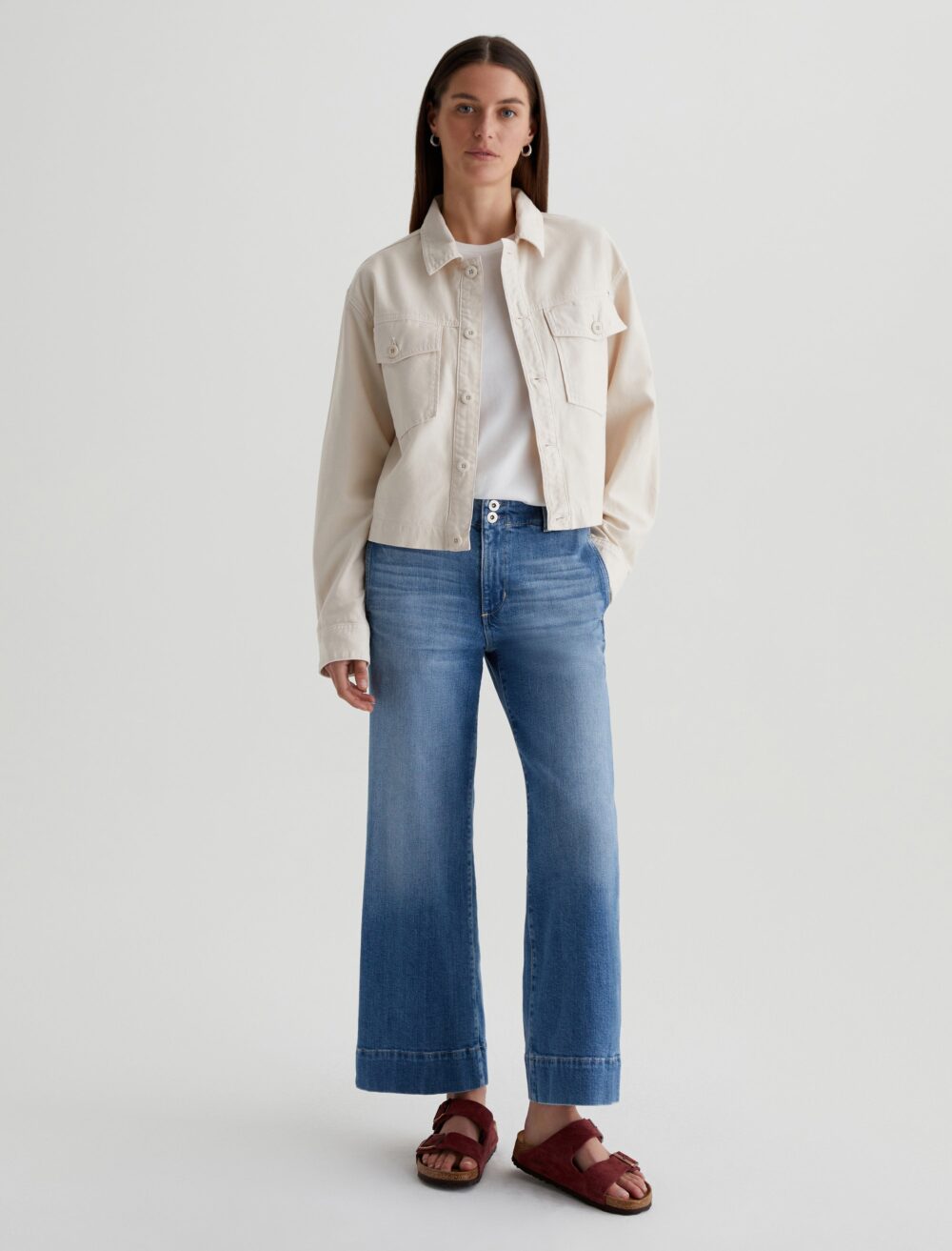 Nastasha is a cropped wide-leg jean with a mid-rise waist and discreet hip pockets built into the forward side seams. Featuring a faded blue wash, these cropped jeans are perfect for everyday wear in 12.5 oz. Vintage Indigo Stretch Denim from Italy. Doubled belt loops and a zip fly with dual-button closure accent the pair.