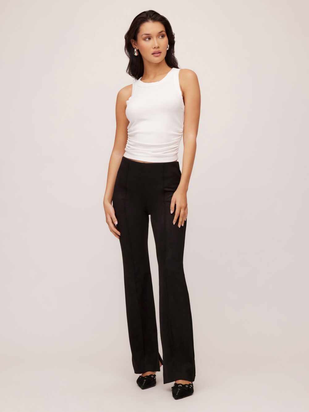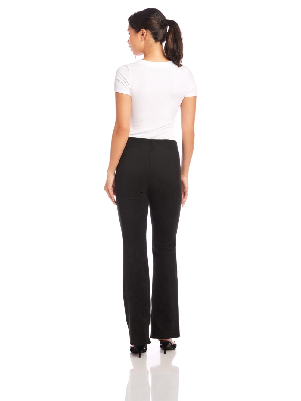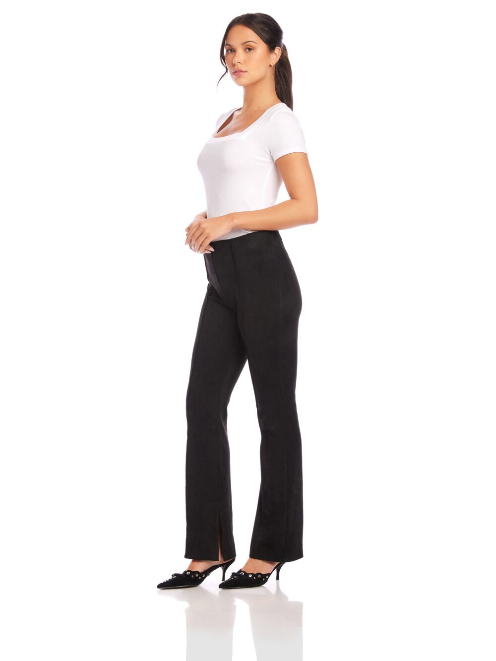 The Neli Pants are expertly crafted from a faux suede knit material, providing a sleek and sophisticated look. With a slim bootcut design and front pintuck detailing, these pants offer a flattering fit for any occasion. The stretchy material ensures comfort and versatility, making them perfect for a seamless transition from work to a night out.
