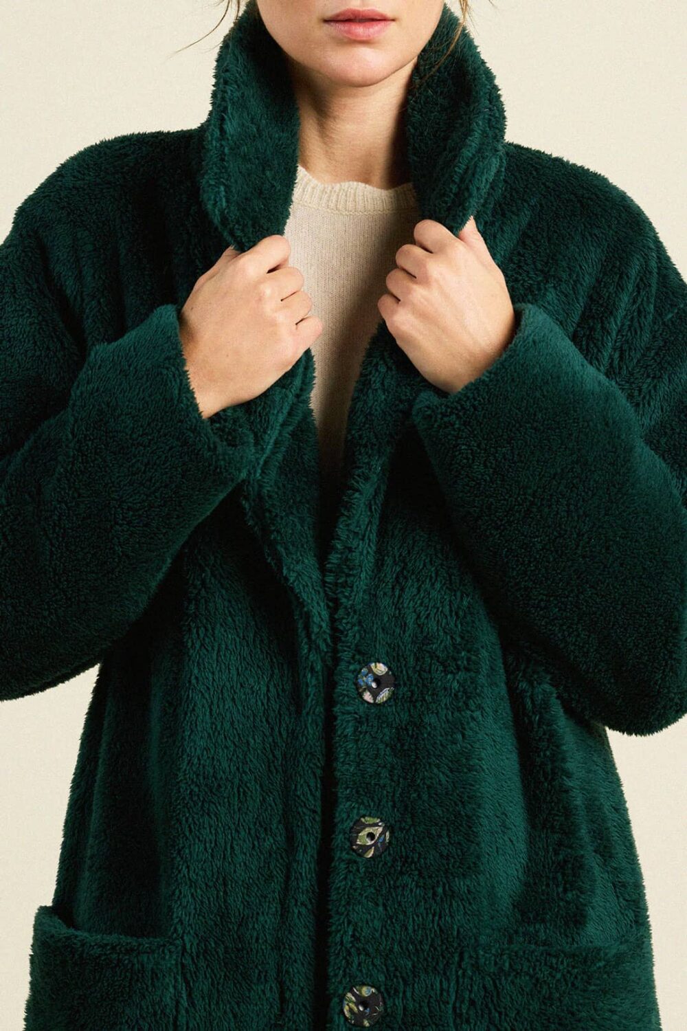 The Obriana Coat is a warm, fluffy car coat in fleece, featuring front snap closures, patch pockets and a vintage print lining. With a slightly oversized fit, it finished at mid-thigh with long sleeves, a wide folded collar and petersham ribbon trim. Inspired by road trips to the ski lodge, it’s the ideal blend of cozy and classic. Shown here in Ponderosa Fleece and made from polyester.