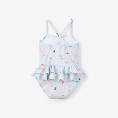 Pale Blue Ocean Adventure Baby Ruffle Swimsuit