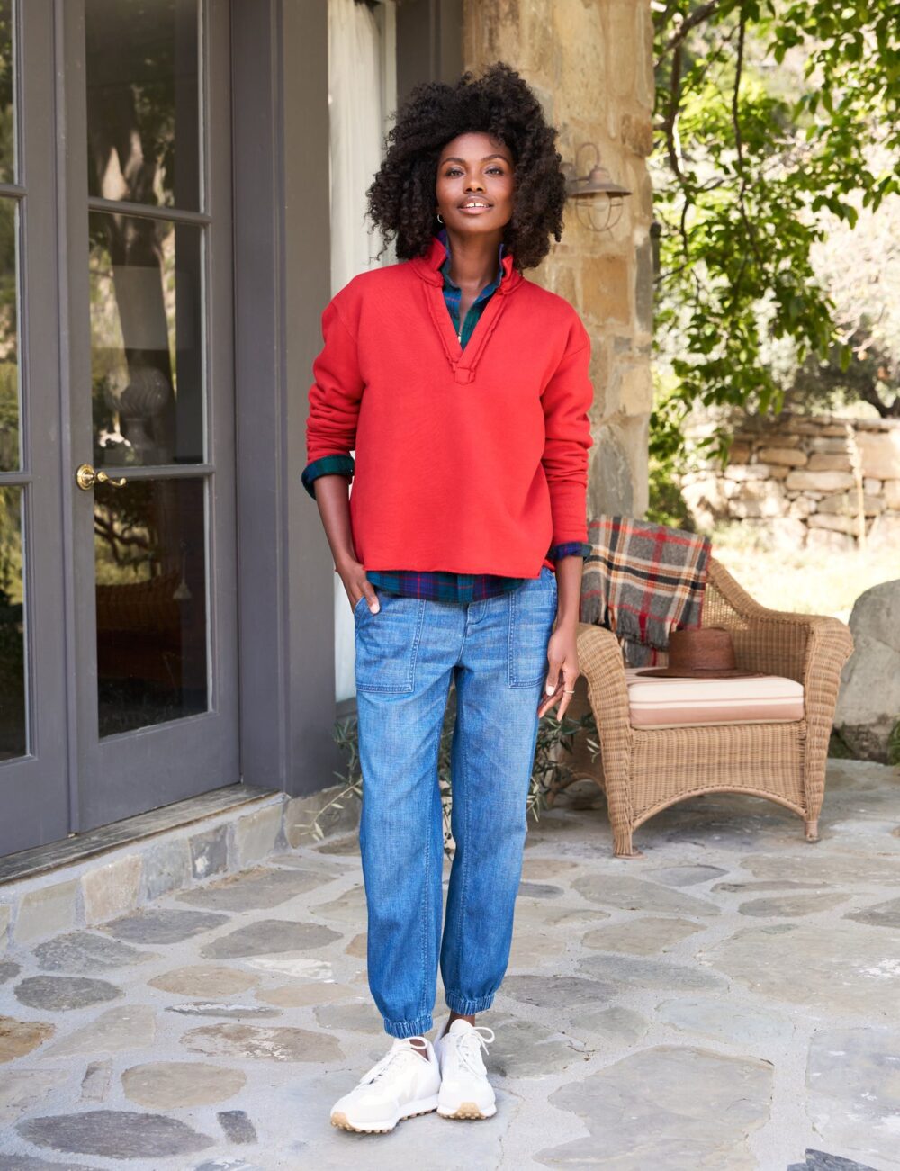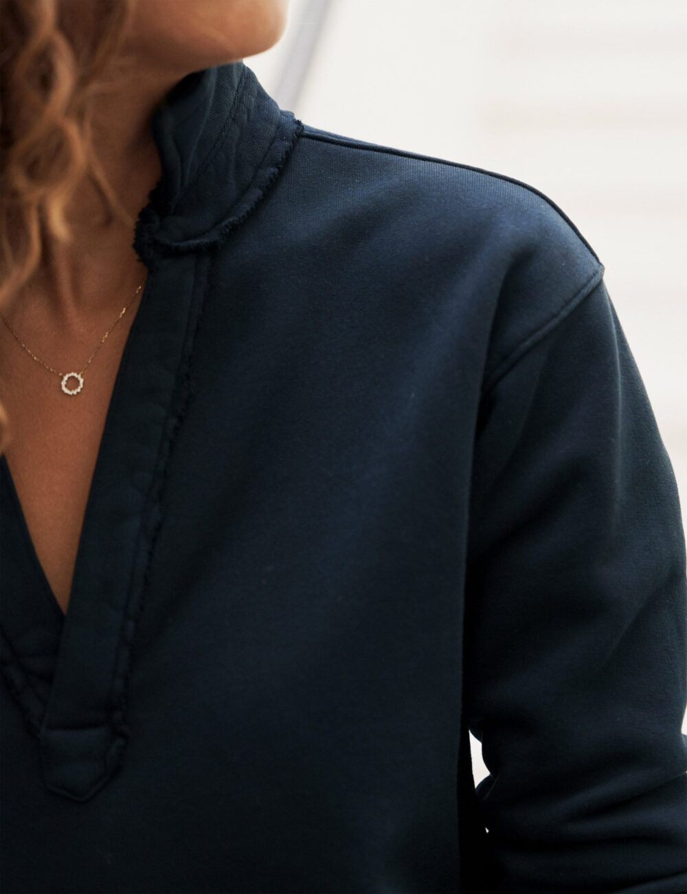 Frank & Eileen’s runaway hit Popover Henley has a slight drop sleeve, sporty v-neck, and straight raw-cut hem that looks cropped without sacrificing any length or coverage. This piece takes you from running laps to lunch, from beach walks to brunch…