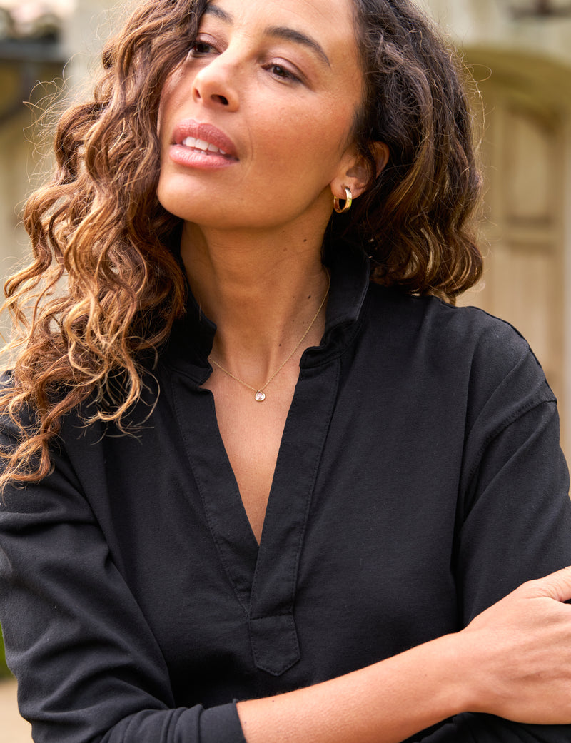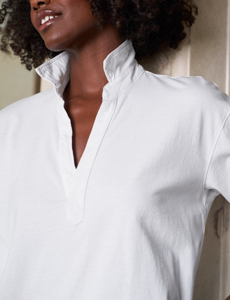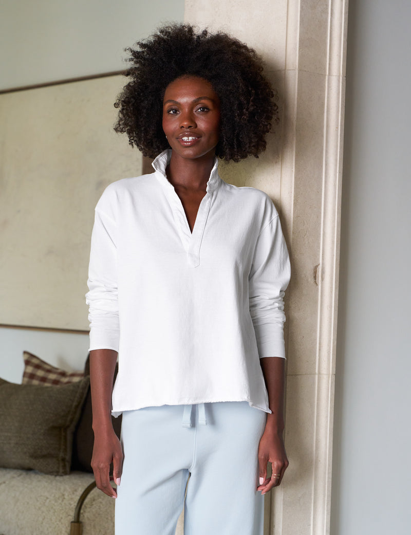 F&E’s runaway hit Popover Henley has a slight drop sleeve, sporty v-neck, and straight raw-cut hem that looks cropped without sacrificing any length or coverage. This piece takes you from running laps to lunch, from beach walks to brunch…